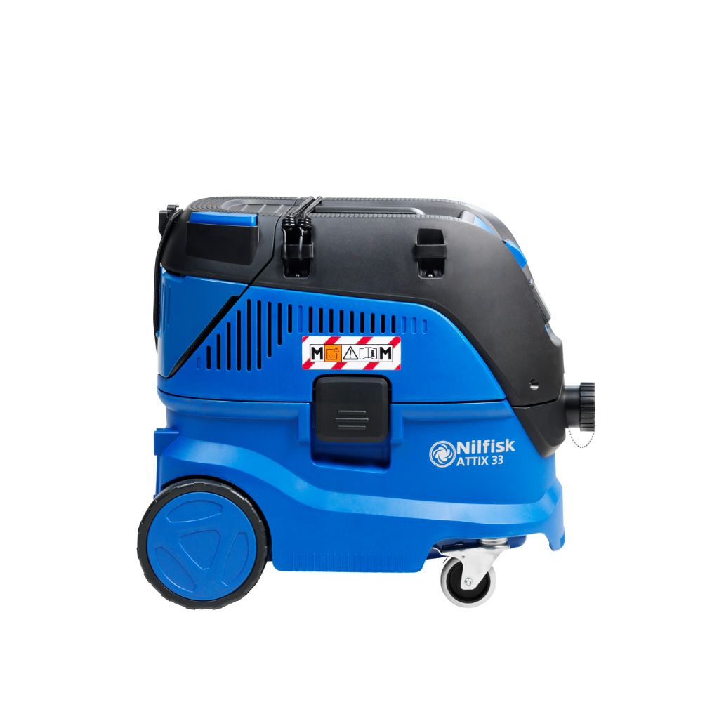 ATTIX 33 M/H toz emici serisi, Nilfisk ıslak ve kuru vakum portföyünün tasarım ve özellik düzeyi için yeni bir standart belirliyor. Yenilikçi filtreleme sistemi, iyileştirilmiş performans, sağlam tasarım ve toz sınıfı M/H sertifikası ile bu seri, çalışanların sağlığını ve güvenliğini korumak için güvenilir bir makine arayan profesyonel müşteriler için üstün bir çözüm sunar. ATTIX 33 M/H, daha fazla emiş gücü, sızdırmaz toz sistemi, otomatik filtre temizleme ve diğer birçok kullanıcı avantajı ile birlikte gelir - bina ve inşaatlarda ve diğer endüstrilerdeki tehlikeli tozları toplarken zorlu gereksinimleri karşılamak üzere tasarlanmıştır.
