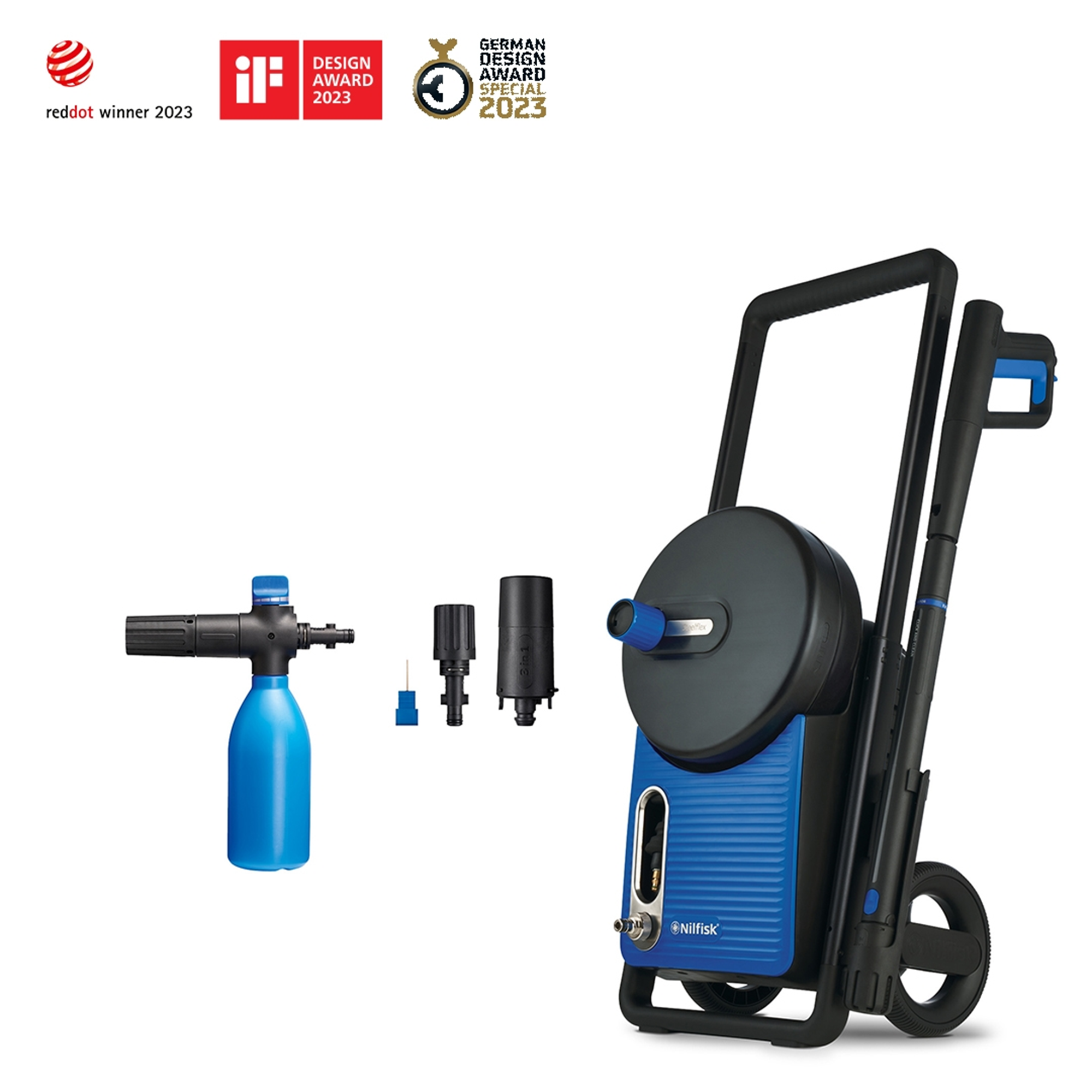 Çok Amaçlı Sprey Tabancası , Çubuğu ve Güçlü Köpük Püskürtücü ile tamamlanan bu güçlü yüksek basınçlı yıkama makinesi ile dış mekândaki tüm günlük temizlik işlerinizin üstesinden gelebilirsiniz. İndüksiyon motoru ve uzun ömürlü metal pompa, hassas yüzeylerden yüzeye işlemiş zorlu kirlere kadar her türlü temizlikte etkili sonuçlar elde etmenizi sağlar. 10 metrelik Steelflex hortumun esnekliği artırılmıştır ve kullanımdan sonra yerleşik hortum makarası kullanılarak kolayca sarılır.